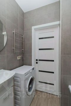 Санузел совмещенный , выложен керамогранитом. Установленна ванная , раковина, стиральная машина.