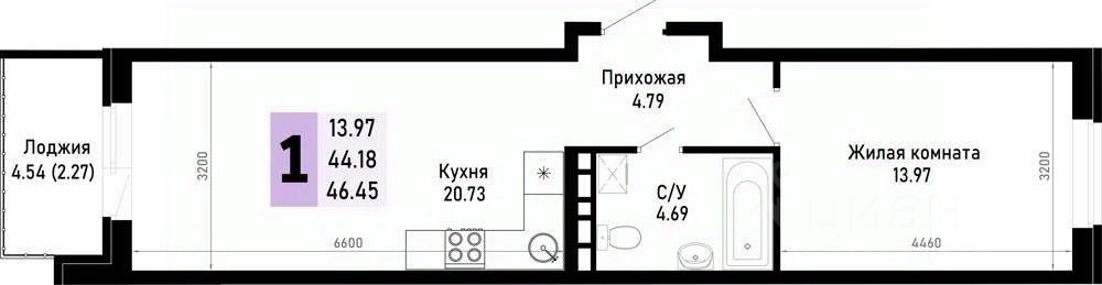 Общая площадь46,45 м²