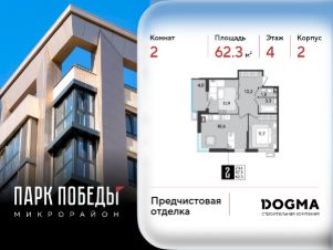 Срок сдачи: 3 кв. 2026, общей площадью 62.3 кв.м., на 4 этаже.