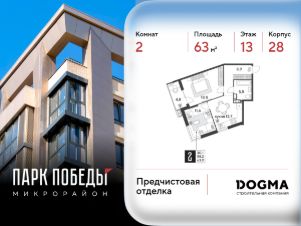 Срок сдачи: 4 кв. 2025, общей площадью 63 кв.м., на 13 этаже.
