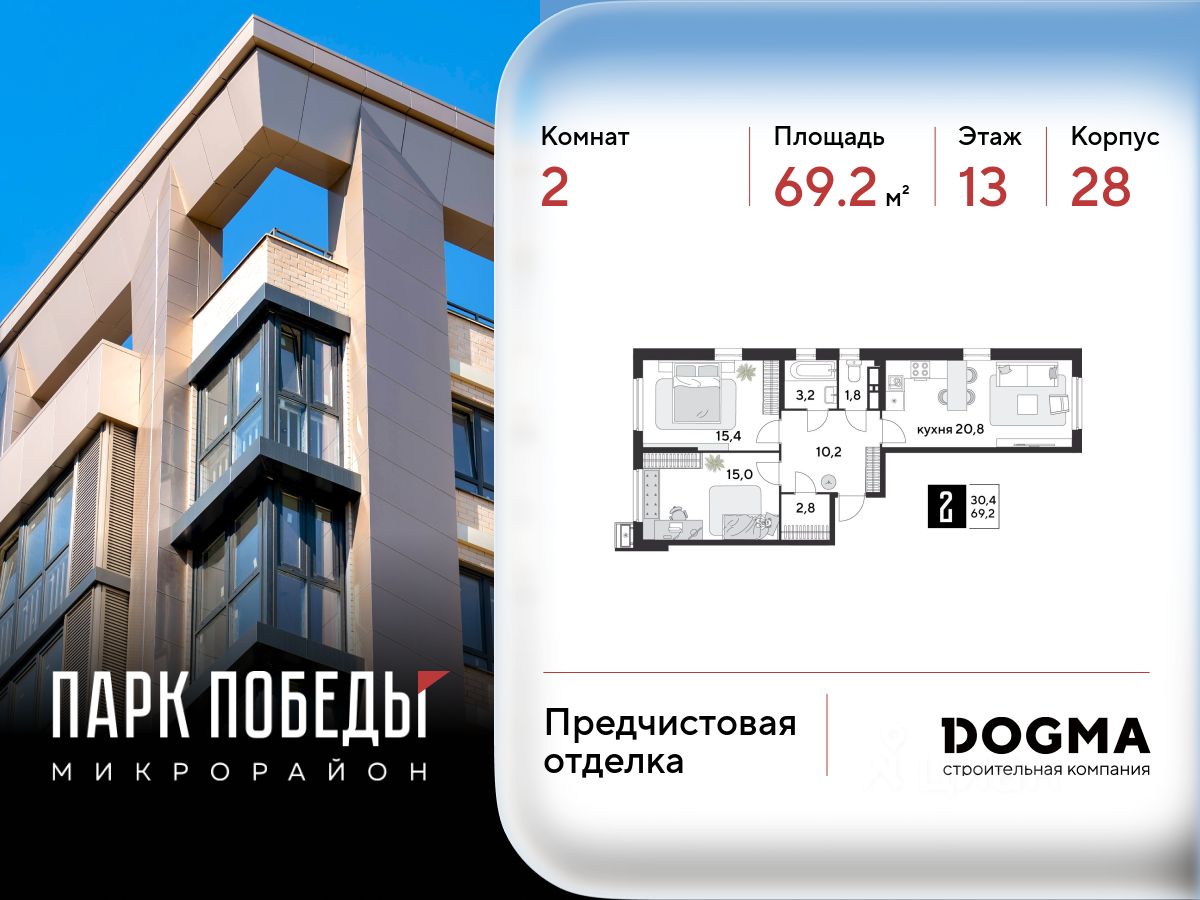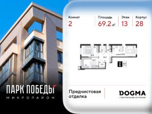 Срок сдачи: 4 кв. 2025, общей площадью 69.2 кв.м., на 13 этаже.