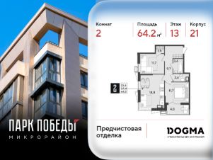 Срок сдачи: 4 кв. 2025, общей площадью 64.2 кв.м., на 13 этаже.