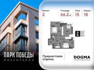 Срок сдачи: 2 кв. 2026, общей площадью 66.2 кв.м., на 15 этаже.