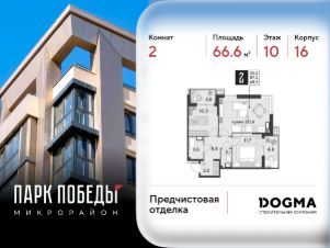 Срок сдачи: 2 кв. 2026, общей площадью 66.6 кв.м., на 10 этаже.
