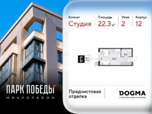 Срок сдачи: 3 кв. 2026, общей площадью 22.3 кв.м., на 2 этаже.