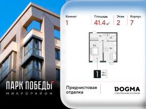 Срок сдачи: 3 кв. 2026, общей площадью 41.4 кв.м., на 2 этаже.