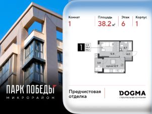 Срок сдачи: 2 кв. 2026, общей площадью 38.2 кв.м., на 6 этаже.