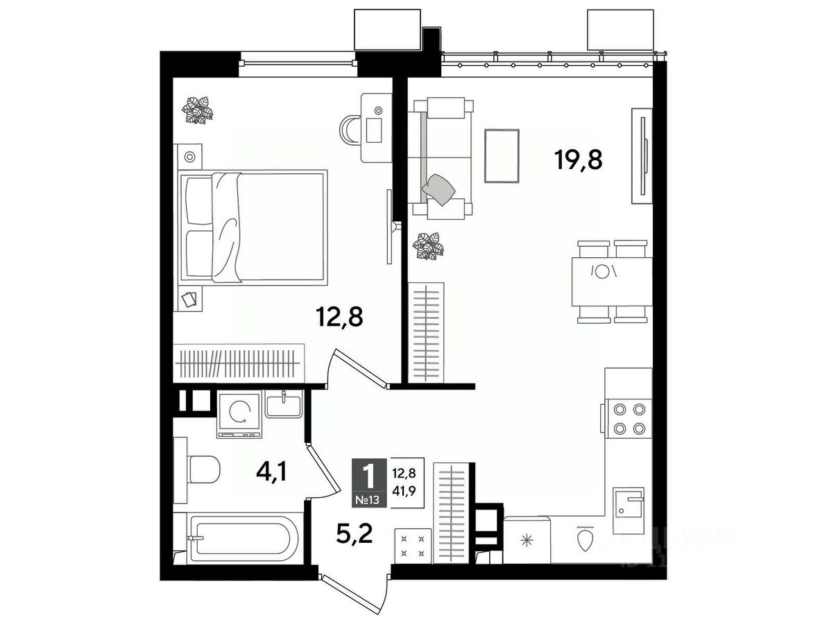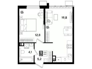 В продаже 1-комнатная квартира от застройщика! Мкр. "ДОГМА ПАРК" г. Краснодар, Литер 30 Срок сдачи: 2 кв. 2027, общей площадью 41.90 кв.м., на 4 этаже.
