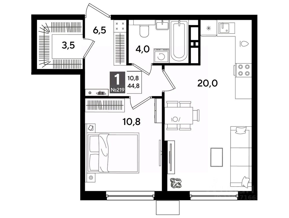 В продаже 1-комнатная квартира от застройщика! Мкр. "ДОГМА ПАРК" г. Краснодар, Литер 32 Срок сдачи: 2 кв. 2027, общей площадью 44.80 кв.м., на 15 этаже.