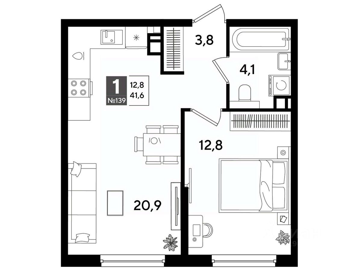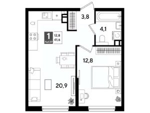 В продаже 1-комнатная квартира от застройщика! Мкр. "ДОГМА ПАРК" г. Краснодар, Литер 34 Срок сдачи: 2 кв. 2027, общей площадью 41.60 кв.м., на 6 этаже.