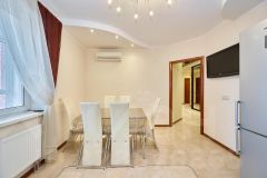 - Комнаты оборудованы удобной мебелью: кровать 180200, диван-кровать и кресло-кровать в зале, диван-кровать во второй спальне. Стол в зале размером 12390 см, который раздвигается до 245 см, станет отличным местом для семейных ужинов и встреч с друзьями.