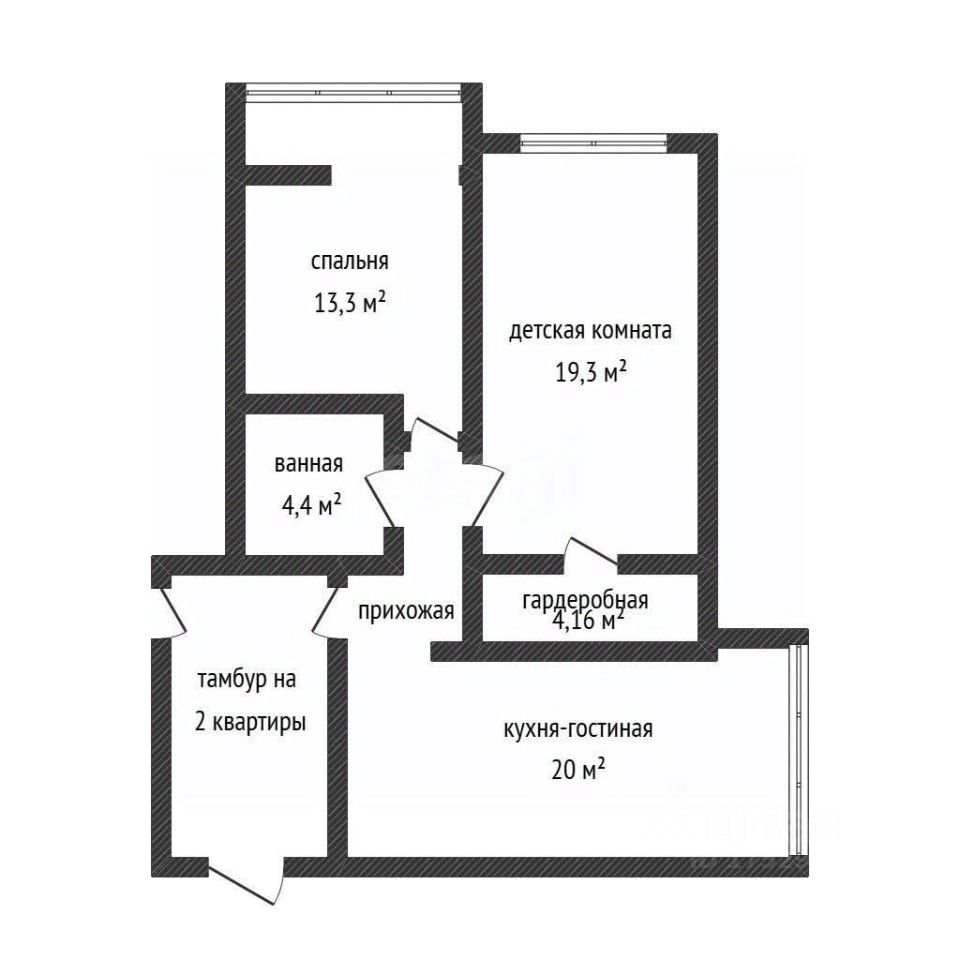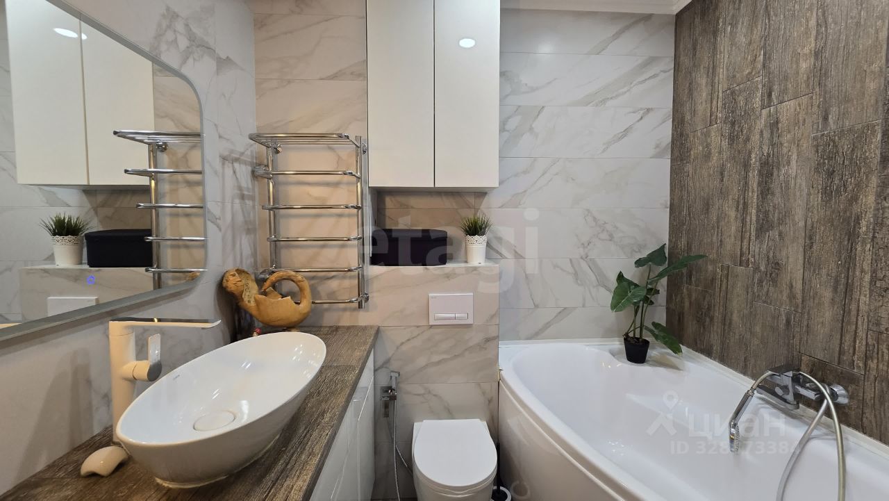 Евро трехкомнатная квартира - две полноценные комнаты, одна из которых с гардеробной и кухня гостиная с зоной отдыха и камином.