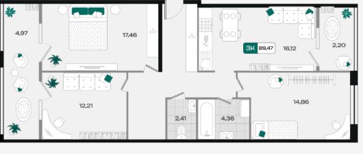 Общая площадь89,47 м²