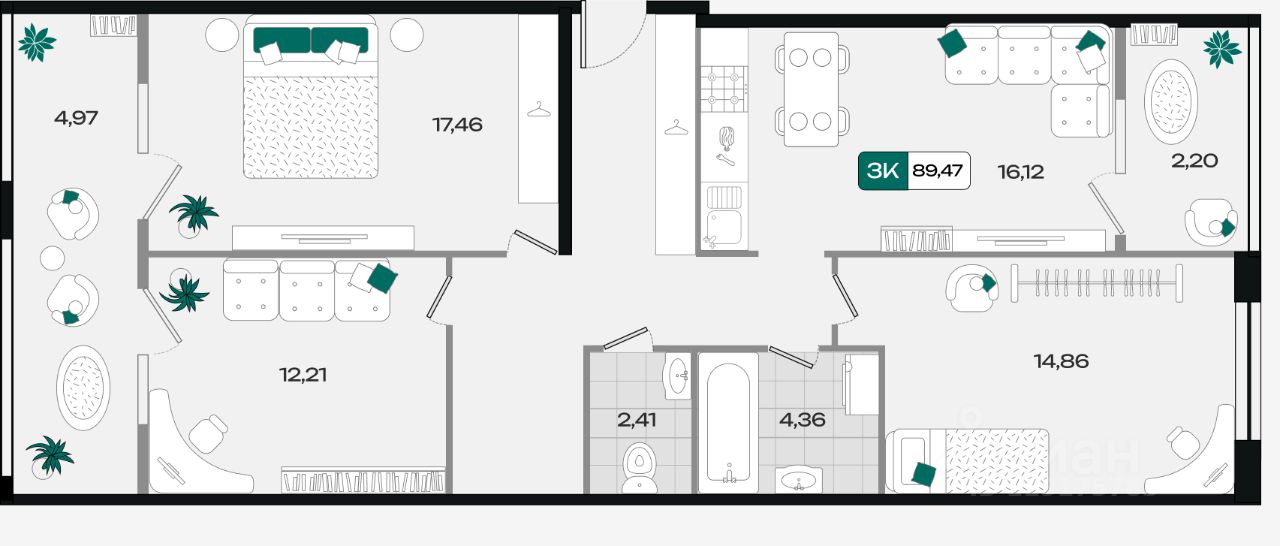 Высота потолков до 3,9 м наполняет пространство светом и воздухом, создавая ощущение свободы.