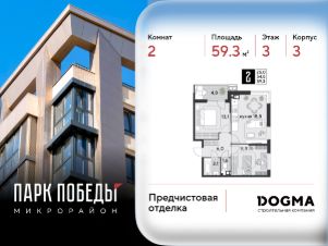 Срок сдачи: 2 кв. 2026, общей площадью 59.3 кв.м., на 3 этаже.