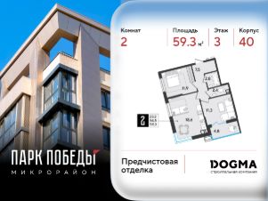 Срок сдачи: 2 кв. 2026, общей площадью 59.3 кв.м., на 3 этаже.