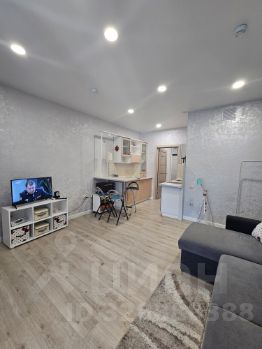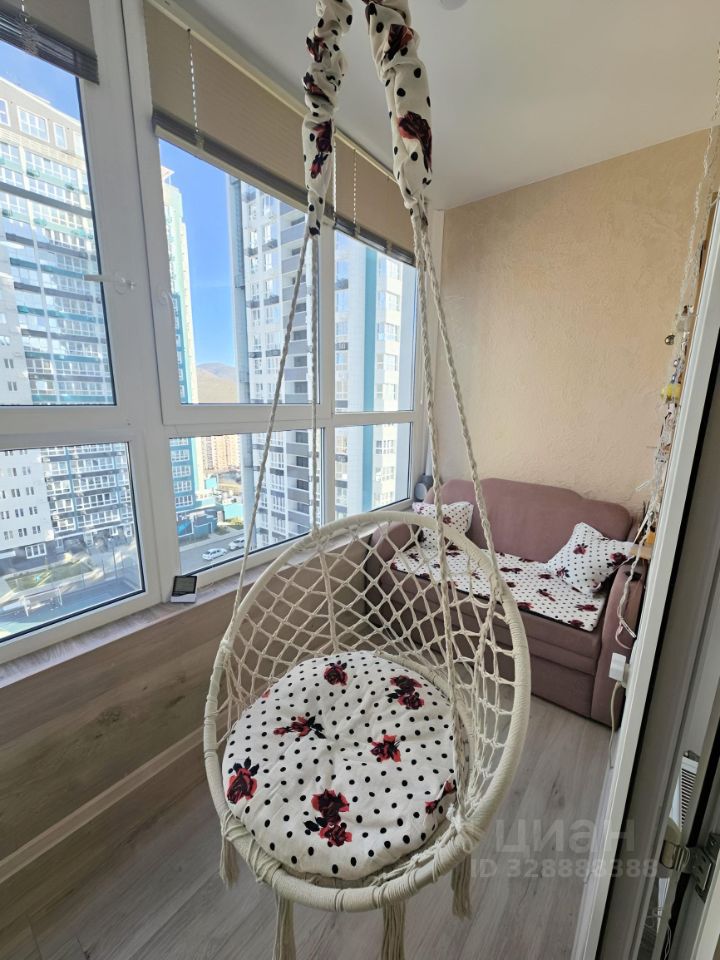 Продается стильная студия с дизайнерским ремонтом в монолитном доме 2021 года постройки. Просторная кухня-гостиная оснащена встроенной техникой, включая холодильник и стиральную машину. Из окон открывается вид на горы и двор с детскими и спортивной площадками. В квартире предусмотрена гардеробная и панорамные окна, что создает ощущение простора и света.