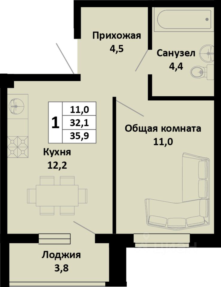 Продаётся 1-комнатная квартира в сданном доме (Литер 1), срок сдачи: IV-кв. 2025, общей площадью 34.67 кв.м., на 1 этаже. Новый жилой дом от застройщика "СЗ Кубаньновострой" расположен по адресу: Россия, Краснодарский край, Динской район, Южно-Кубанское сельское поселение, посёлок Южный, Северная улица