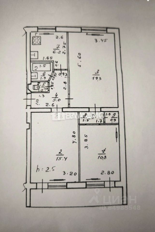 Общая площадь 62 кв.м