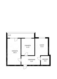 Комнаты изолированные площадью 19 и 11 м2, площадь кухни -11м2, просторный коридор площадью 9м2, что позволяет сделать большую зону хранения, санузел совмещенный.