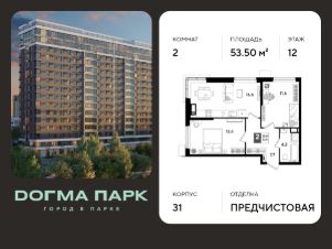 В продаже 2-комнатная квартира от застройщика! Мкр. "ДОГМА ПАРК" г. Краснодар, Литер 31 Срок сдачи: 2 кв. 2027, общей площадью 53.50 кв.м., на 12 этаже.