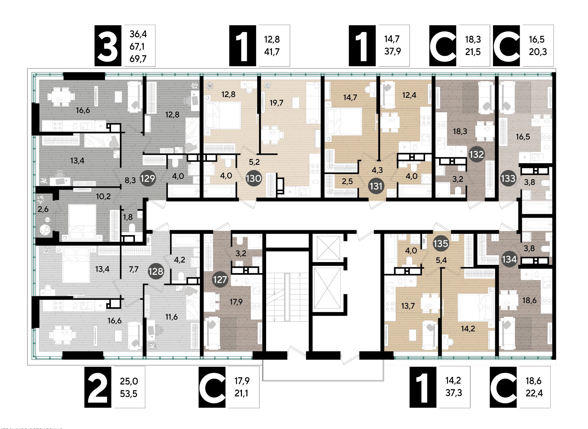 В продаже 3-комнатная квартира от застройщика! Мкр. "ДОГМА ПАРК" г. Краснодар, Литер 30 Срок сдачи: 2 кв. 2027, общей площадью 69.80 кв.м., на 16 этаже.