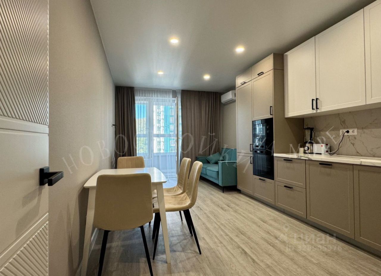 Просторная кухня-гостиная 19.1 м2. Встроенная кухня укомплектована: холодильник, посудомоечная машина, микроволновая печь, вытяжка, духовой шкаф. Диван раскладывается (доп. спальное место), телевизор.
