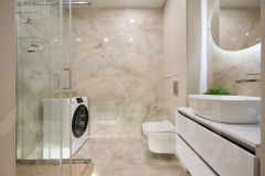 - Пол: ламинат светлого оттенка, имитирующий натуральную древесину, придает помещению теплоту и элегантность.