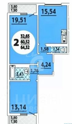 Расположена на 15 этаже 16-этажного блочного дома 2019 года постройки. Площадь квартиры — 65 кв.м., планировка бабочка, комнаты изолированные, 20 и 13 кв.м., широкая кухня правильной формы. Санузел - с красивой отделкой плиткой. Квартира теплая, комфортная, без перепланировок, с современным ремонтом и в отличном состоянии.