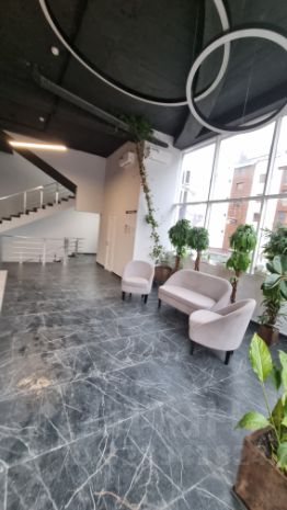 Ресепшн, два лифта и собственная парковка.