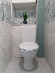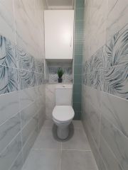 Санузел раздельный и облицован кафелем.