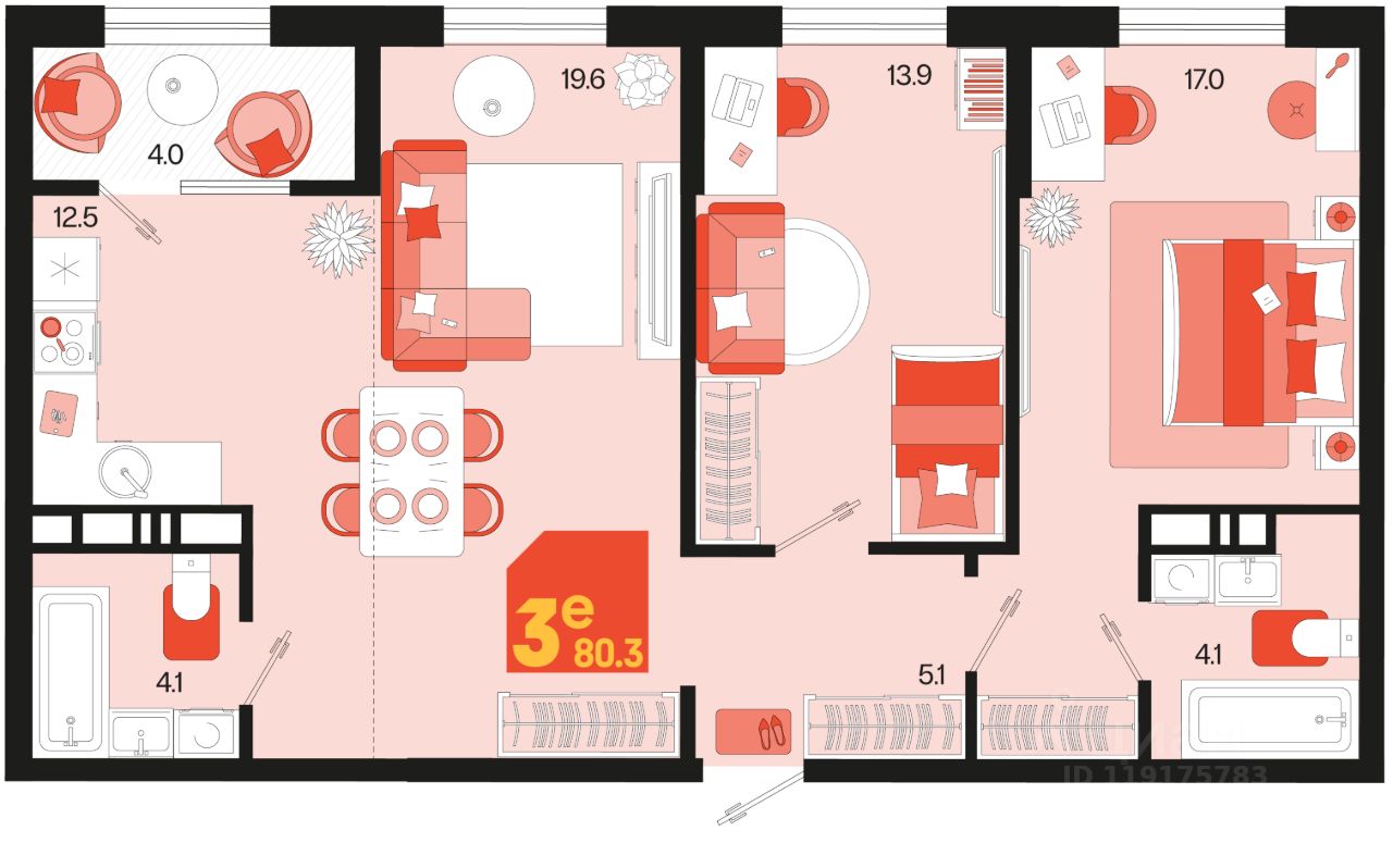 Продаётся 3-комнатная квартира в строящемся доме (Квартал 1.3 - Литер 2), срок сдачи: II-кв. 2027, общей площадью 78.3 кв.м., на 9 этаже. Жилой район "Первое