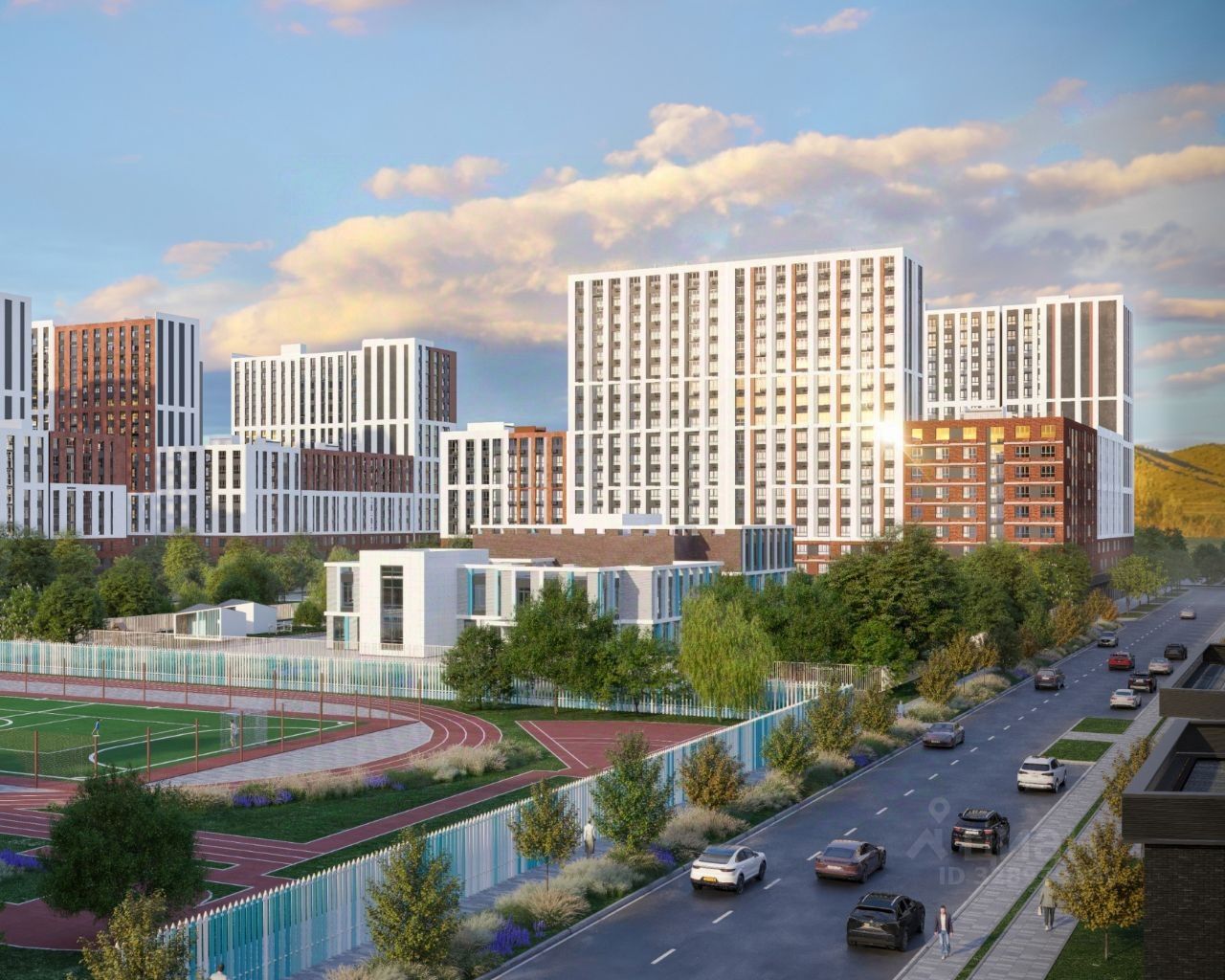 кварталов, 31 дом переменной этажности от 8 до 18 этажей, собственный парк 9