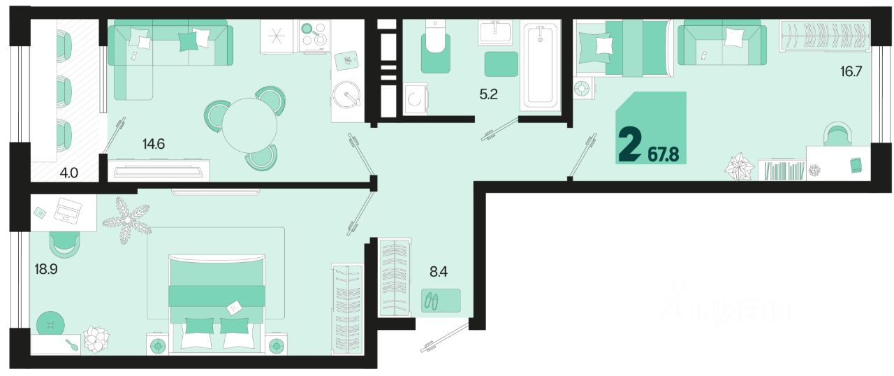 Продаётся 2-комнатная квартира в строящемся доме (Квартал 1.3 - Литер 2), срок сдачи: II-кв. 2027, общей площадью 65.8 кв.м., на 14 этаже. Жилой район "Первое