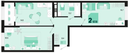 Продаётся 2-комнатная квартира в строящемся доме (Квартал 1.3 - Литер 2), срок сдачи: II-кв. 2027, общей площадью 65.8 кв.м., на 16 этаже. Жилой район "Первое
