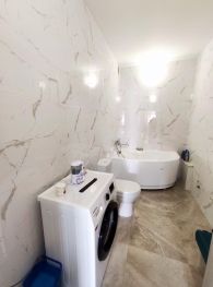 В квартире свежий качественный ремонт, дизайн интерьера в спокойных пастельных тонах.
