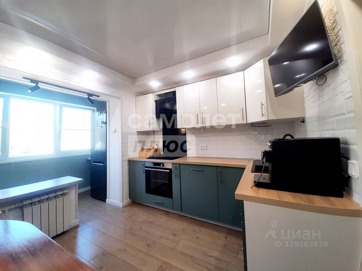 Полностью оборудована кухня: кухонный гарнитур и встроенная бытовая техника.