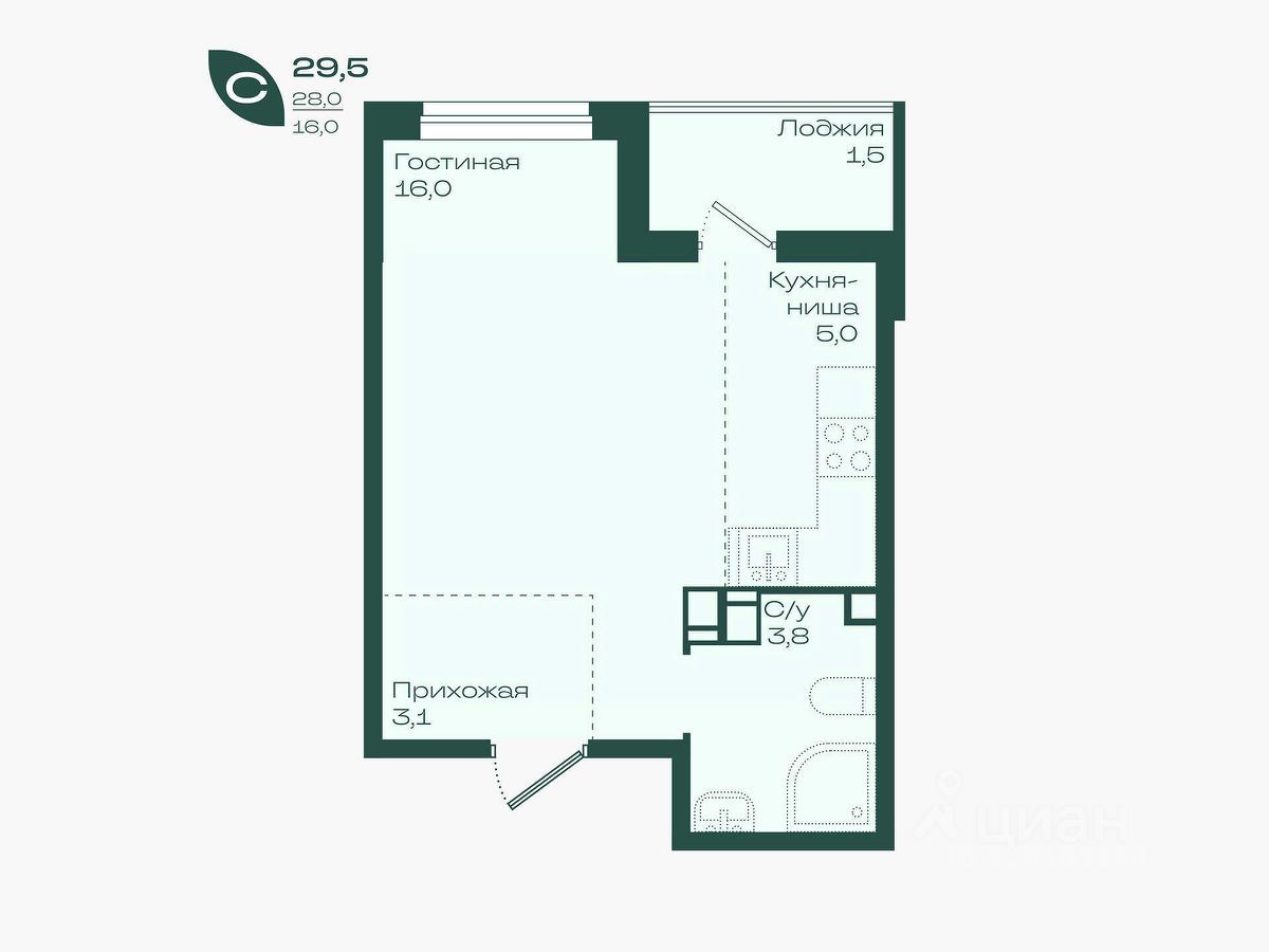 Общая площадь29,5 м²
