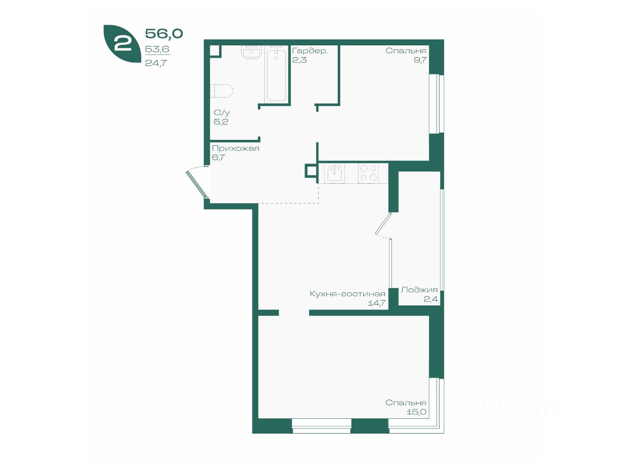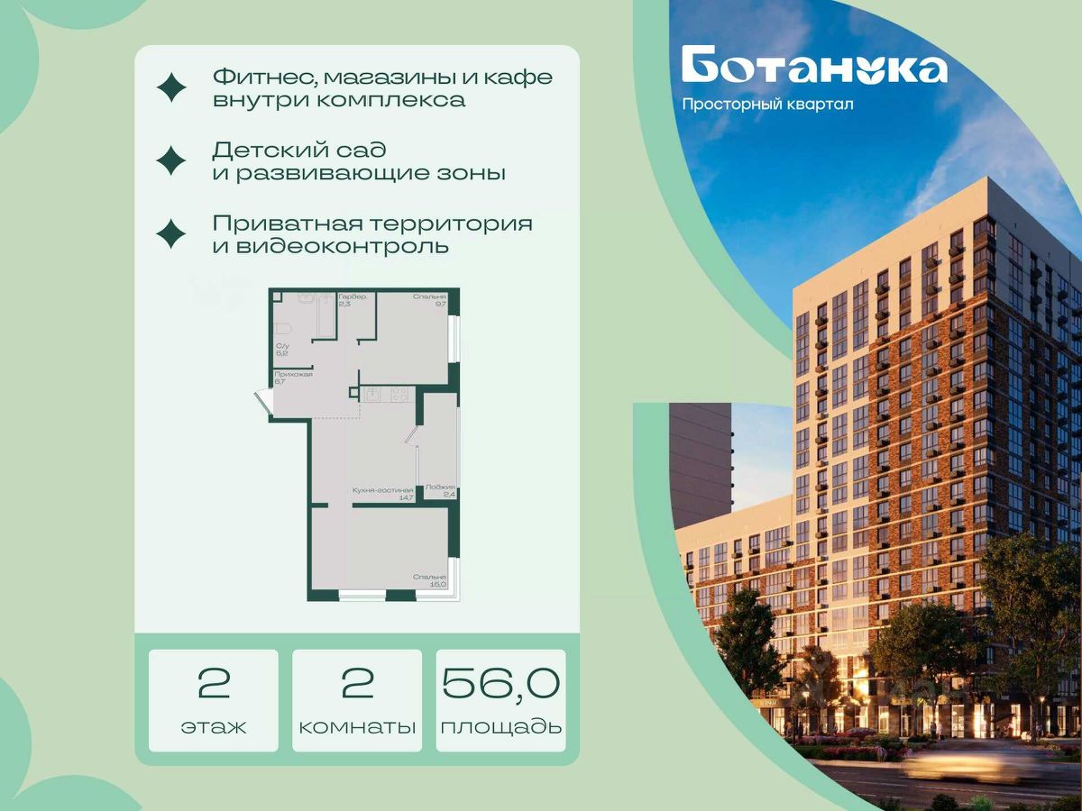 Продается современная 2-комнатная квартира в новом ЖК "Ботаника" — проект федерального застройщика "ЮгСтройИнвест".