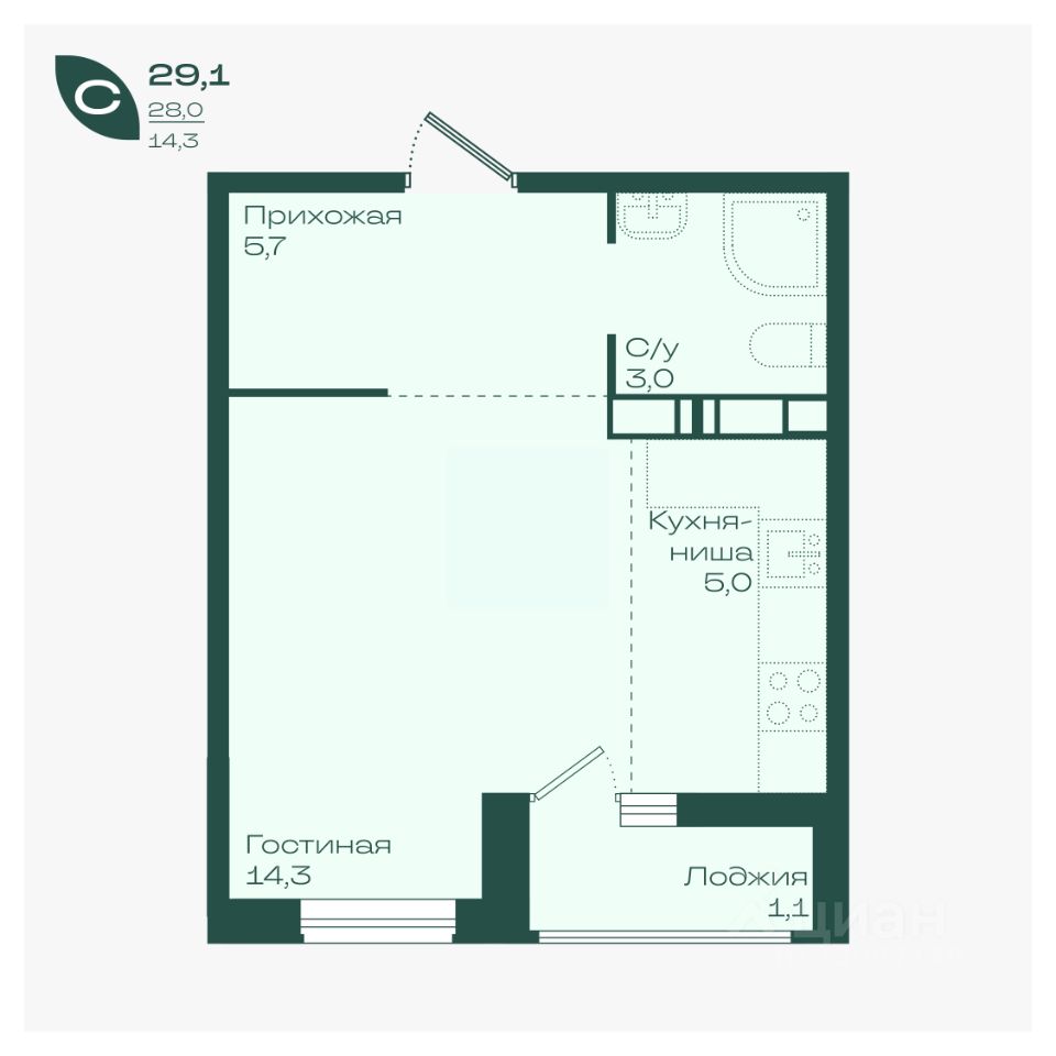Современная студия с удобной планировкой и качественной отделкой;