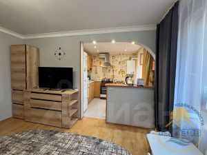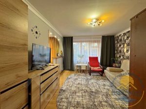 Планировка -распашонка изолированная: окна выходят на 2 стороны (на заднюю часть двора из балкона и на переднюю часть двора, спальня просторная - 18 кв.м с выходом на балкон, Широкий коридор - 6 кв.м. откуда выход во все комнаты, совмещённый санузел с ванной - 5.1 кв.м., гостевая комната - зал - 14 кв.м, и отдельная кухонная территория.