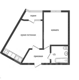 Общая площадь 43,6м², Прихожая 5,5 м², Спальня - 15,5 м², Кухня - 18 м², Туалет - 4 м², Балкон - 3 м².