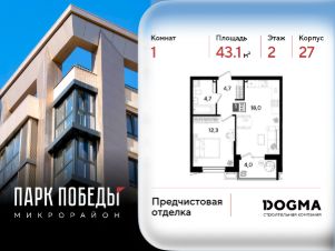 Срок сдачи: 2 кв. 2026, общей площадью 43.1 кв.м., на 2 этаже.