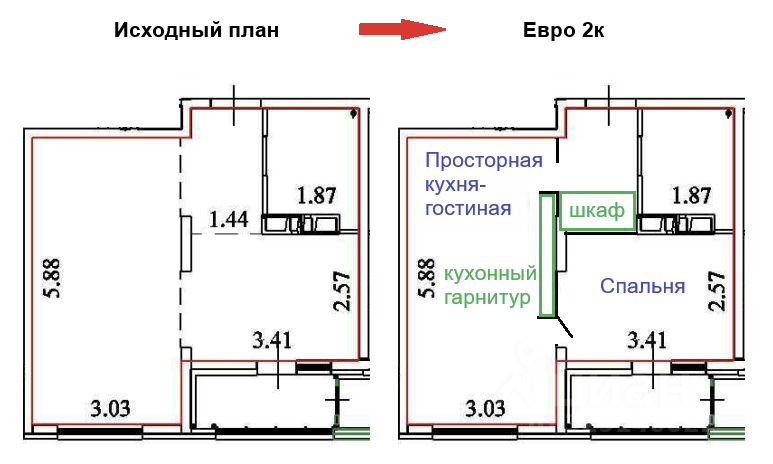 * Возможность трансформации в евро2комнатную квартиру (кухнягостиная + изолированная спальня) — актуально для покупателей и арендаторов.