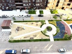 Территория двора с современной системой парковки со шлагбаумом, которая обеспечит сохранность транспортного средства владельцев жилья. Дополнительной гарантией безопасности является закрытый доступ на территорию комплекса.