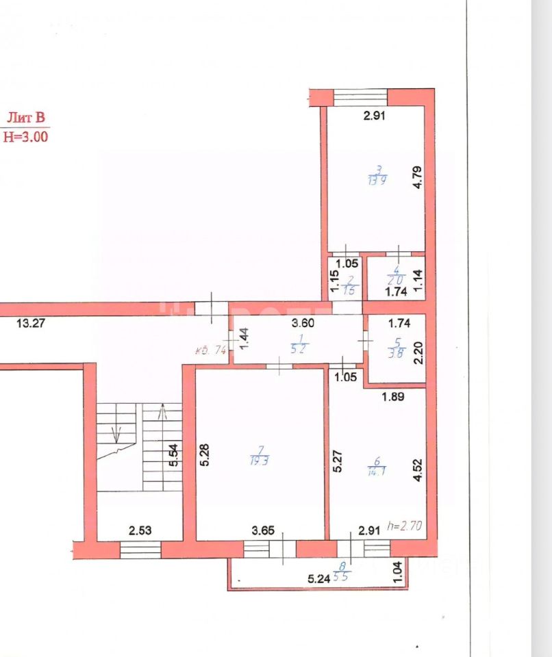 кухня 14,1 м2, комнаты 19,3+13,9 м2 ;