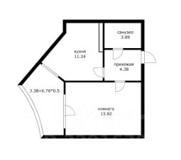Общая площадь: 33,8 м² (с холодными помещениями — 36,8 м²).