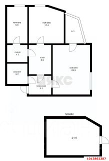 Просторная квартира площадью 104 кв.м. Есть подвальное помещение 24 кв.м.