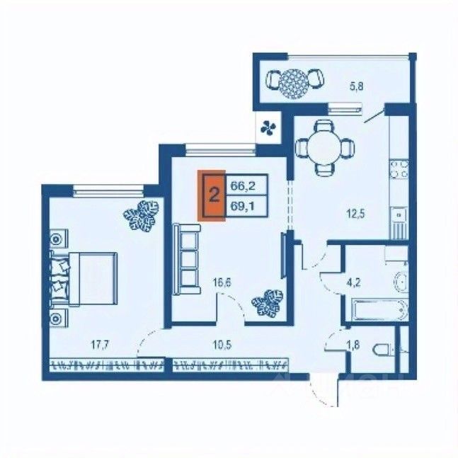Номер объекта: 542145. Продаю уютную 2-комнатную квартиру на 9 этаже 21-этажного дома. Общая площадь составляет 69,10 кв.м. Комнаты 17,7м. и 16,6м. изолированы, кухня 12,5м. с выходом на балкон, квартира подходит для проживания семьи. Этот вариант идеально подойдет тем, кому важен комфорт и удобство.