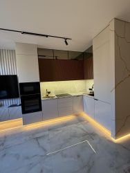 Вместительные шкафы, крашенные фасады всей мебели МДФ